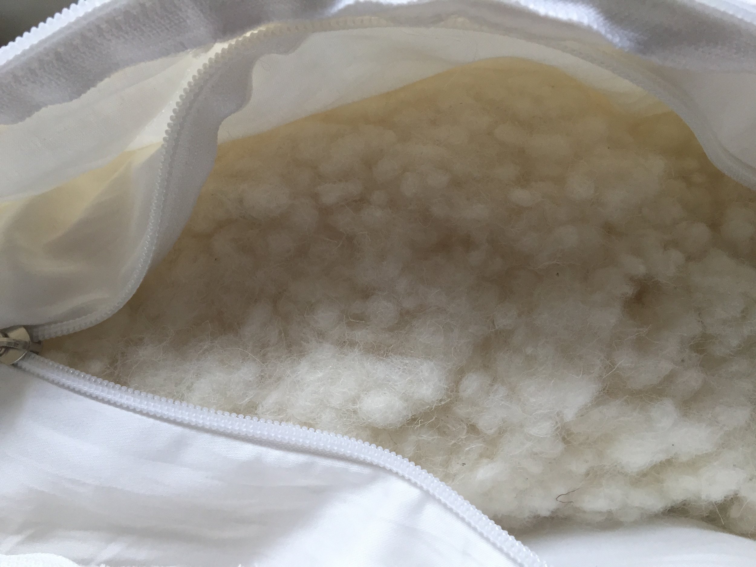 Of the whole part of the mattress and bedding, what is in our pillows is the closest to our face and our breathing. So, investing in a healthy pillow is ideal. Sleep & Beyond's myWoolly pillow is an adjustable wool pillow with a quilted cotton cover. It is also washable, which is wonderful,l and you can take out or add wool fill, which is a great feature! The quilted cotton cover is thick enough so that it protects it, and inside is another thinner cover that holds the wool fibers.